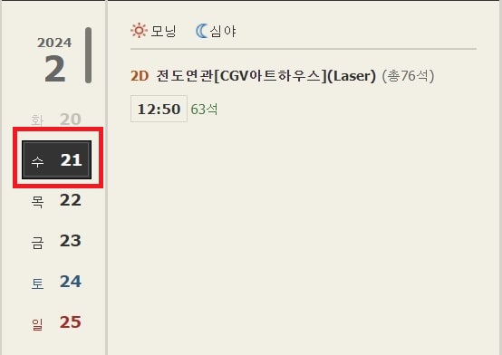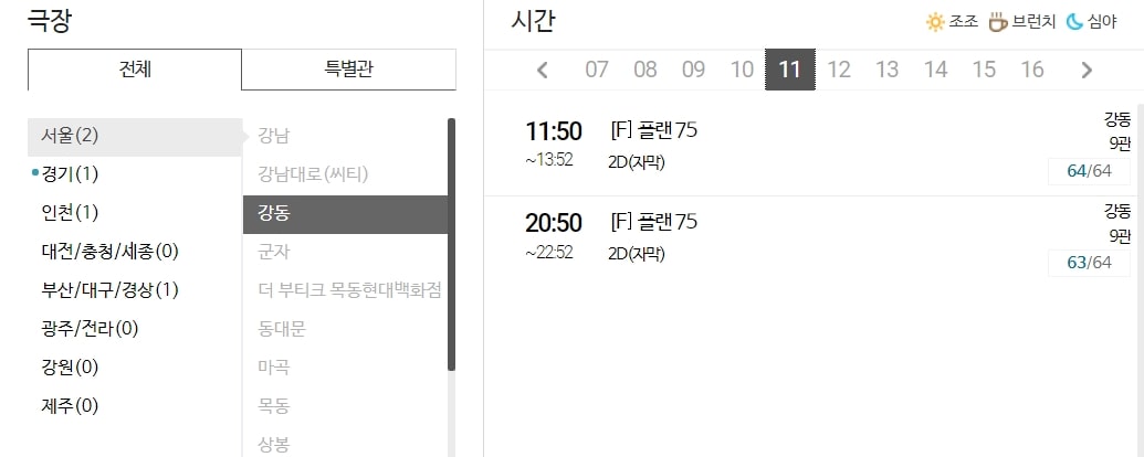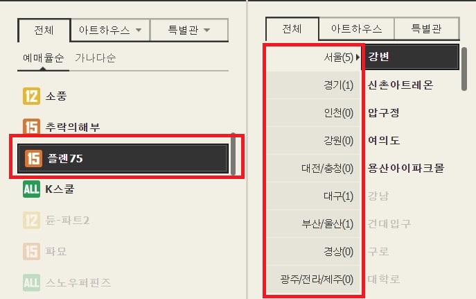 영화별 예매를 선택하시고 플랜 75를 선택하시면 자세한 상황을 확인하실 수 있습니다.
