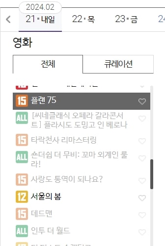 2월 21일 수요일 기준으로 영화 플랜 75는 CGV, 메가박스 영화관에서 상영 중이며 롯데시네마에서는 현재 상영관이 없습니다.