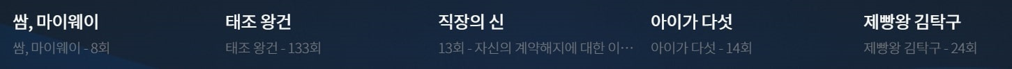 위에서 소개해드린 엠빅라이브와 마찬가지로 24시간 라이브로 연속해서 방영되는 곳으로 현재 쌈 마이웨이 8회, 태조 왕건 133회, 직장의 신 13회, 아이가 다섯 14회, 제빵왕 김탁구 24회, 내 딸 서영이 9회가 방송 중에 있으며