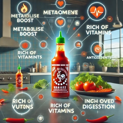 스리라차 소스는 매운 맛을 내는 고추를 주요 성분으로 하기 때문에, 몇 가지 건강 효능이 있을 수 있습니다.