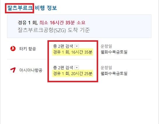 하지만 직항편이 모두 예약된 경우나 비용을 절약하려는 경우, 중간 경유지를 경유하는 항공편을 이용할 수 있는데, 이 경우 중간 경유지에서의 대기 시간을 포함하여 약 15시간 이상 소요될 수 있습니다.