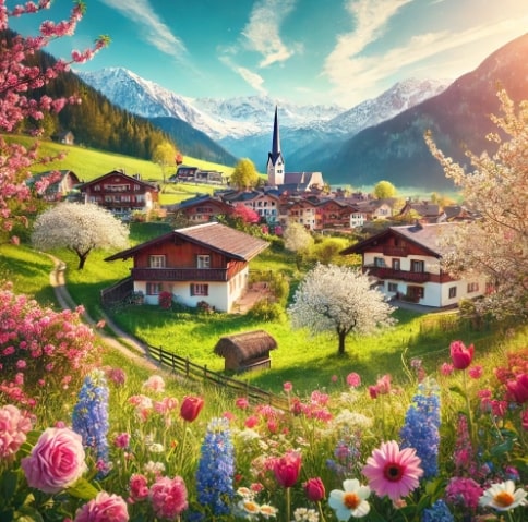 봄의 오스트리아는 꽃이 만개하는 시기로, 낮에는 온화하고 쾌적한 날씨가 이어지며, 이 시기에는 알프스 산맥의 눈이 서서히 녹아내리며, 푸른 들판과 꽃이 만발한 공원을 산책하기에 이상적입니다.