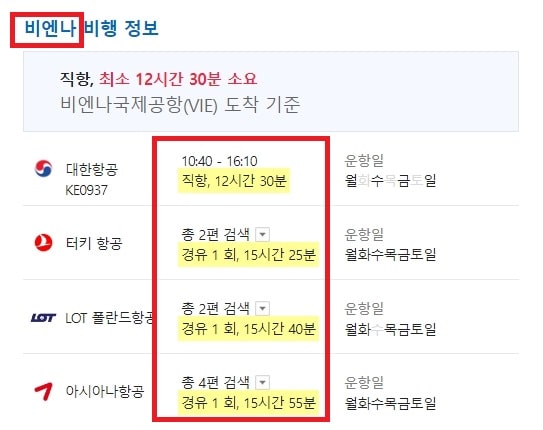 인천공항에서 오스트리아 비엔나까지의 비행시간