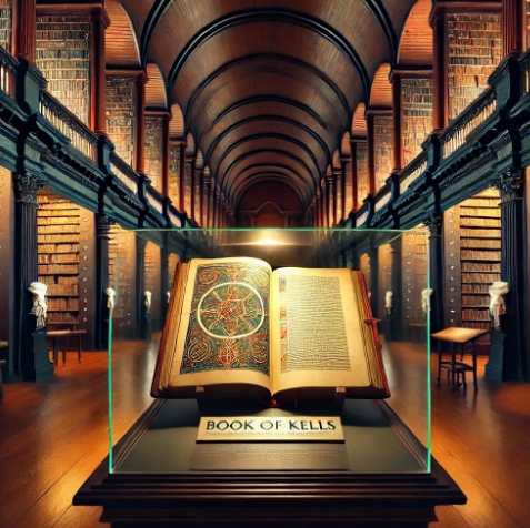 이 작품은 화려한 장식과 정교한 삽화로 유명하며, 아일랜드의 중세 문화를 엿볼 수 있는 중요한 유물입니다.