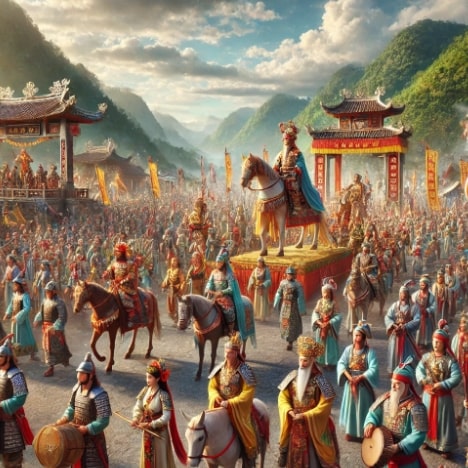 설명: 베트남의 민족 영웅인 지엉 왕을 기리는 축제로, 하노이 근교의 지엉 사원에서 열립니다.