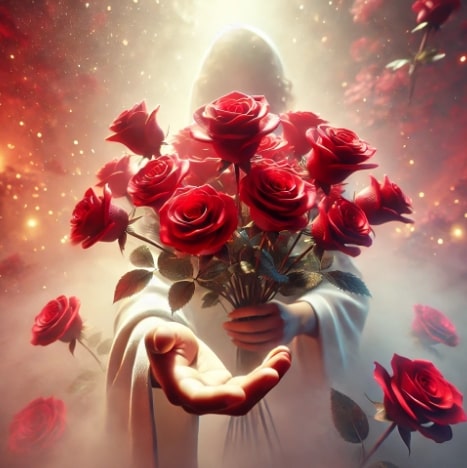장미는 사랑과 열정을 상징하는 꽃으로, 특히 붉은 장미를 받는 꿈은 로맨틱한 사랑을 나타내며, 현재 연애 관계가 더욱 깊어지거나 새로운 사랑이 다가올 수 있음을 의미합니다.