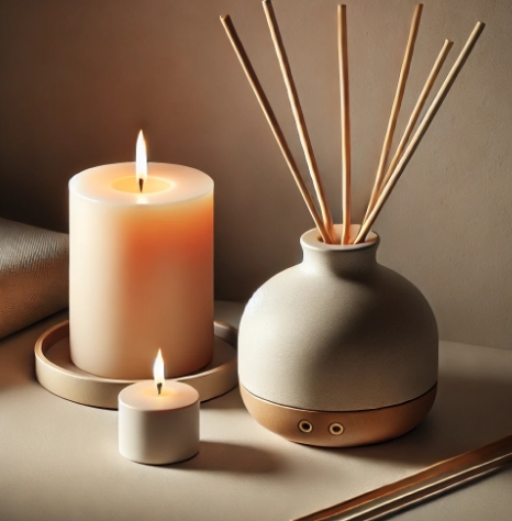 디퓨저와 캔들: 은은한 향을 통해 집 안 분위기를 따뜻하게 만들어 주며, 감각적인 인테리어 효과도 얻을 수 있습니다.