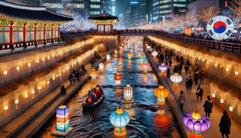 청계천을 따라 이어지는 전통과 현대가 어우러진 빛 조형물과 초롱들은 서울의 겨울밤을 한층 더 낭만적으로 만듭니다. 특히 가족 단위 방문객들이 편안하게 산책하며 즐기기 좋습니다.