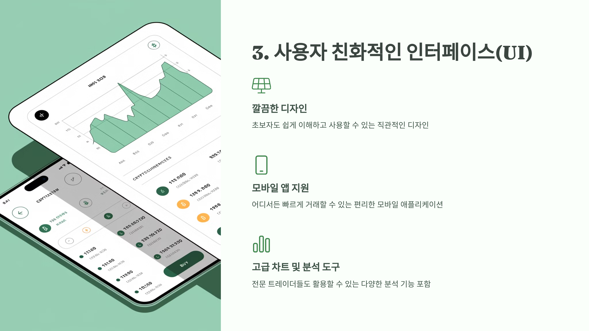 업비트의 가장 큰 장점 중 하나는 직관적인 사용자 인터페이스(UI)입니다.